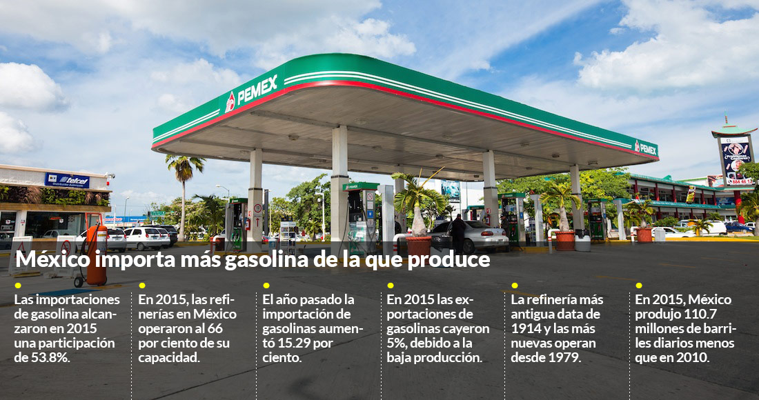 Lo anterior es resultado de la baja producción en las refinerías, mismas que trabajan al 66 por ciento de su capacidad, por lo que más de la mitad de las gasolinas que se consumen en el país sean de importación.