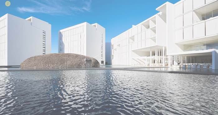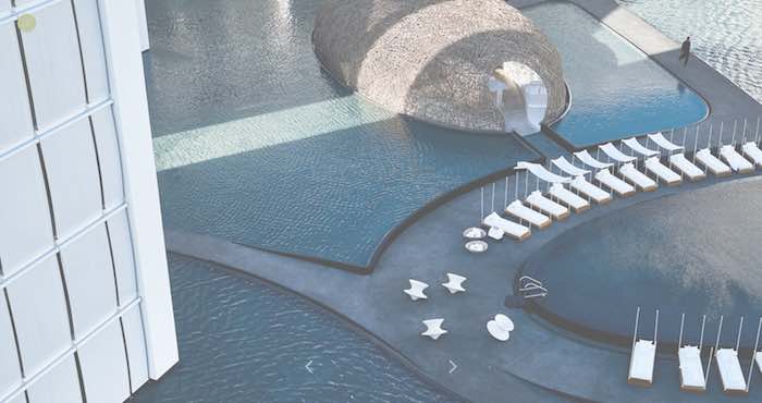 La construcción está sobre una superficie de 3.03 hectáreas, con un total de 198 habitaciones, un centro comercial con tiendas de lujo, cinco restaurantes e instalaciones para hacer yoga, fitness, así como un spa.
