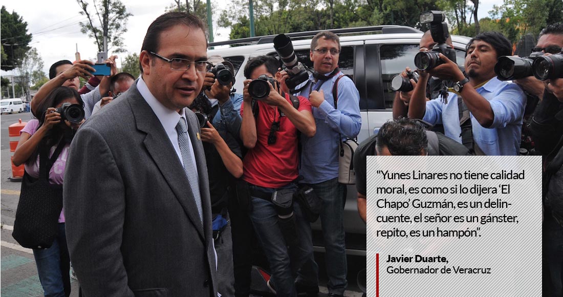 “Yunes Linares no tiene calidad moral, es como si lo dijera ‘El Chapo’ Guzmán, es un delincuente, el señor es un gánster, repito, es un hampón, todo lo que diga Yunes Linares no tiene ninguna autoridad ni calidad moral”.
