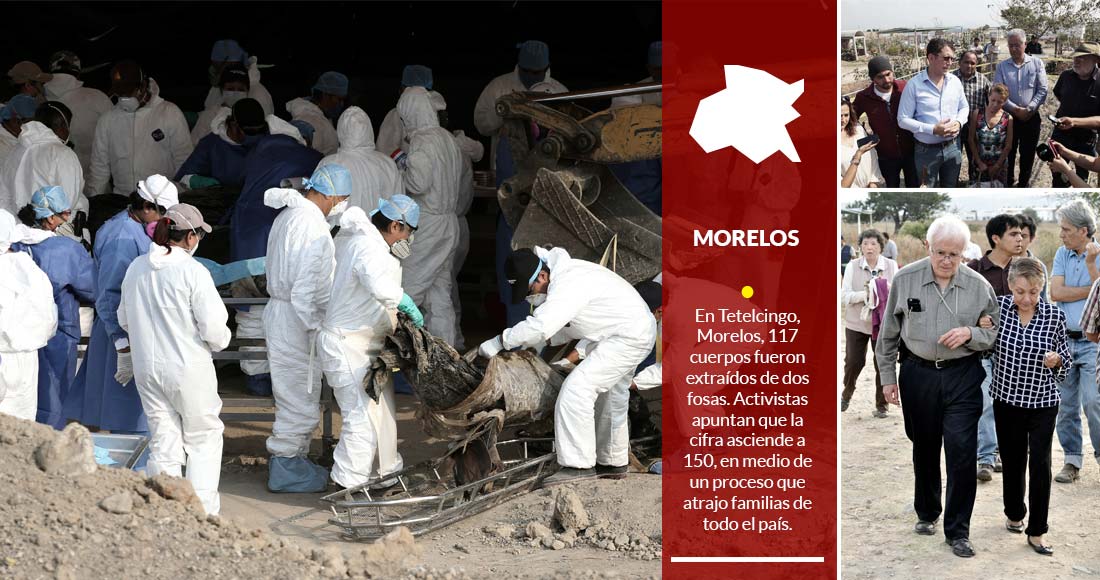 Las fosas de Tetelcingo y en Jojutla revelaron 117 cuerpos y nueve bolsas con 12 fragmentos de personas. Algunos de los cadáveres con el tiro de gracia, sin identificación, en total clandestinidad.
