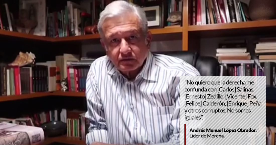 "Podrán pensar que es arrogancia pero no quiero que la derecha me confunda con [Carlos] Salinas, [Ernesto] Zedillo, [Vicente] Fox, [Felipe] Calderón, [Enrique] Peña y otros corruptos. No somos iguales", escribió en el mensaje que acompaña el video.