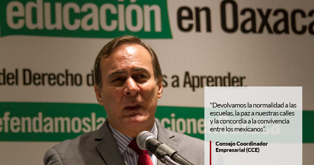 Luego de que la Coordinadora Nacional de Trabajadores de la Educación (CNTE) informaron que no regresarán a clases el próximo lunes,empresarios integrantes del CCE exigieron en un comunicado que “el próximo 22 de agosto debe haber clases en todo el país”.