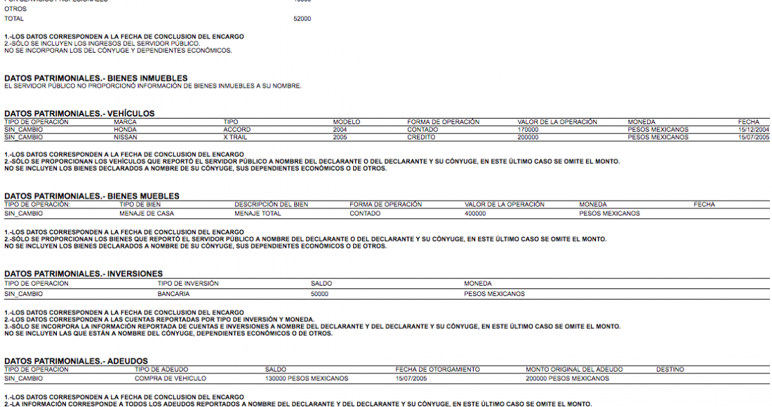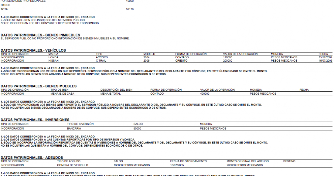 Consulta de Datos: Declaraciones patrimoniales en la SFP