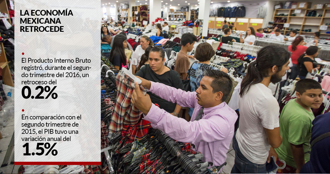 Este lunes el Inegi informó que la economía mexicana se contrajo 0.2 por ciento en el segundo trimestre frente al periodo previo, su primera caída desde el segundo trimestre de 2013, según cifras desestacionalizadas del Inegi.