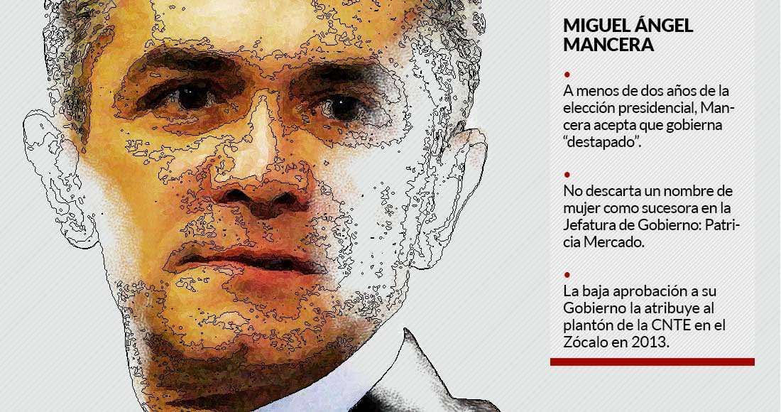 Miguel Mancera es el cuarto Jefe capitalino electo desde que en 1997 se promulgó la primera reforma política para una ciudad llamada entonces Distrito Federal y ha gobernado mientras la aprobación a su gestión ha ido en picada. En 2012, las encuestadoras del periódico El Universal y Parametría promediaban apenas 20 por ciento de rechazo. En este verano ambas han expuesto que esa cifra es de 60 a 70 por ciento.