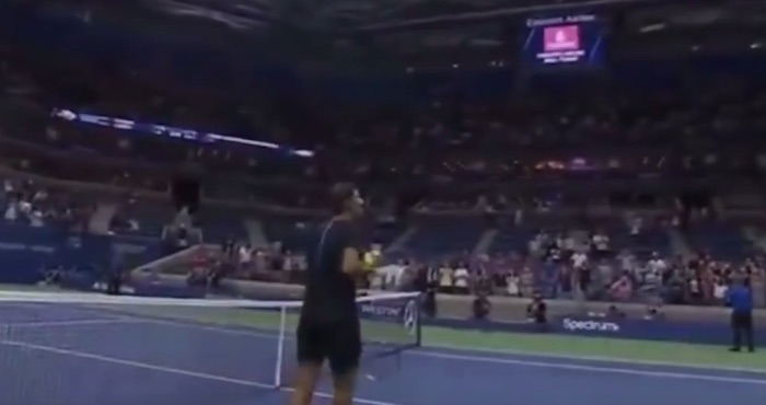 Un periodista de la cadena ESPN retó al tenista español para ver si este era capaz de golpear con una pelota el techo del estadio.