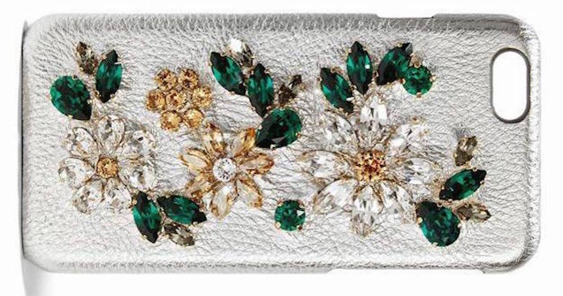 Con cristales incrustados sobre un case plateado, Dolce & Gabbana se lleva la corona al case más fashionista y caro del momento.