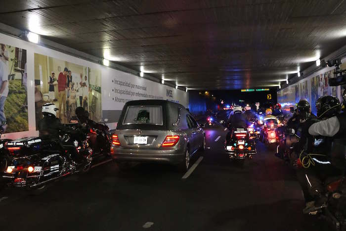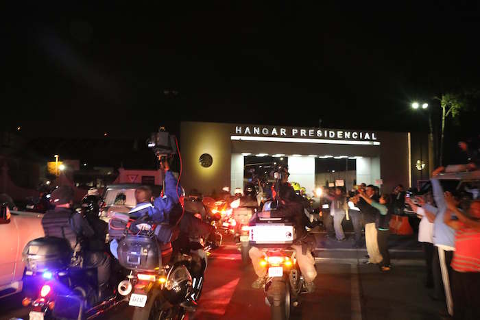 Los cenizas del cantautor Juan Gabriel fueron trasladados al hangar presidencial en un convoy de seguridad de la SSP de la Ciudad de México para ser trasladado a Ciudad Juarez: Foto: Cuartoscuro