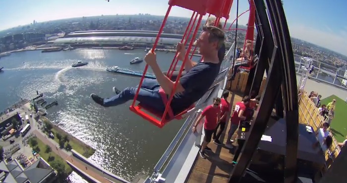 El columpio conocido como “Over the Edge” está suspendido a poco más de 100 metros de altura y aunque abrió apenas el pasado mes de agosto ya ha sido visitado por miles de personas de todo el mundo, convirtiéndose en una de las atracciones más visitadas en Ámsterdam.