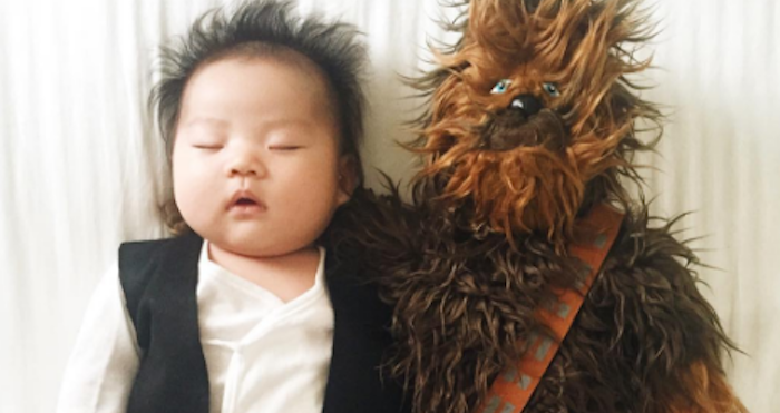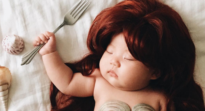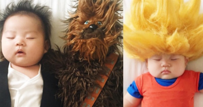 A Laura Izumikawa Choi, mamá de la pequeña, le pareció buena idea utilizar a su hija mientras dormía como modelo de una serie de personajes famosos personajes de películas, series y caricaturas como Han Solo, la Sirenita, Slash y Goku.
