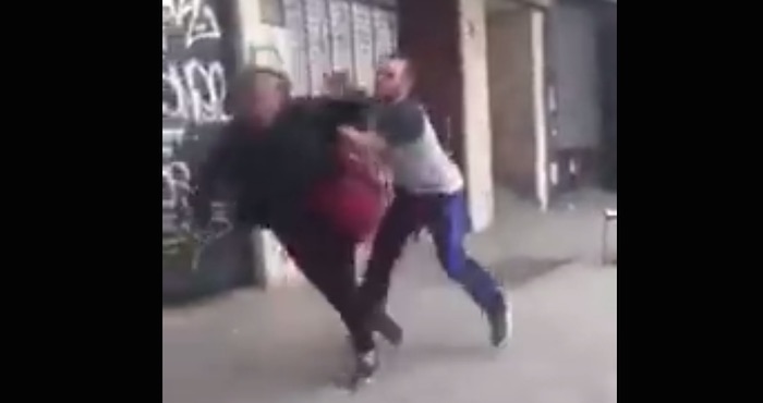 En el video que circula en las redes sociales se ve a un joven que tira al suelo a un indigente y escapa riendo en un automóvil.