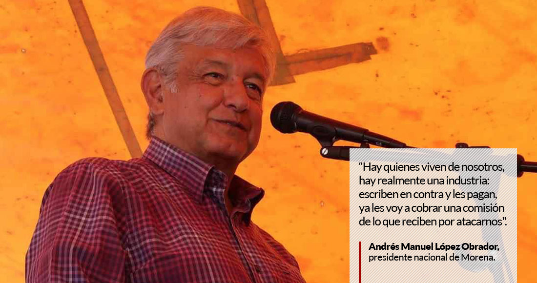 El presidente del Comité Ejecutivo Nacional de Morena, Andrés Manuel López Obrador, dijo que hay quienes reciben dinero por criticarlo a él y a su partido. También descartó toda posibilidad de alianza en el Estado de México con el PAN, el PRD y el PRI.