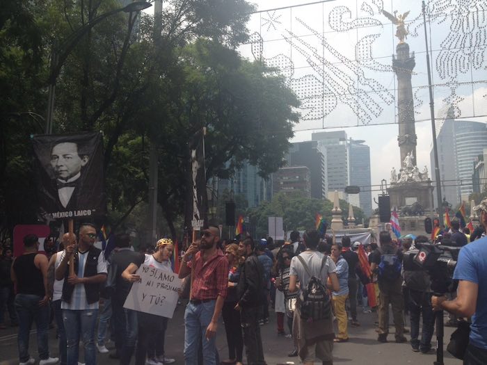 Por el otro lado, se manifestaron representantes de unas 60 organizaciones civiles del Frente Orgullo Nacional, defensor de la diversidad sexual y el Estado laico.