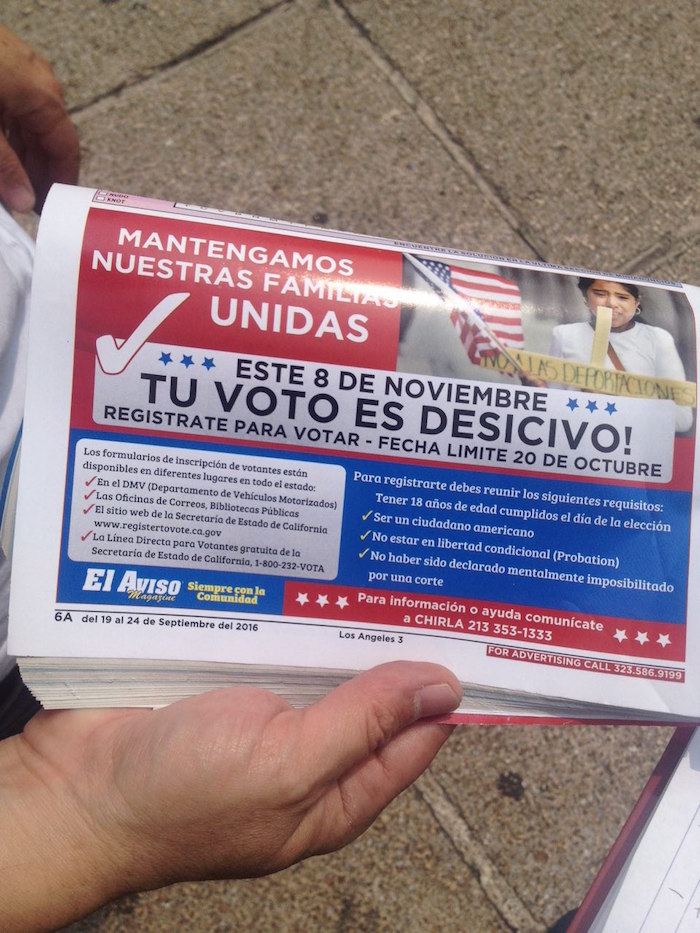 "Los migrantes están en alerta roja, llamando a registrarse cuanto antes. El registro en California termina el 20 de octubre", expuso el escritor. "Si mañana Hillary Clinton pierde el debate, ya valió madres", evaluó.