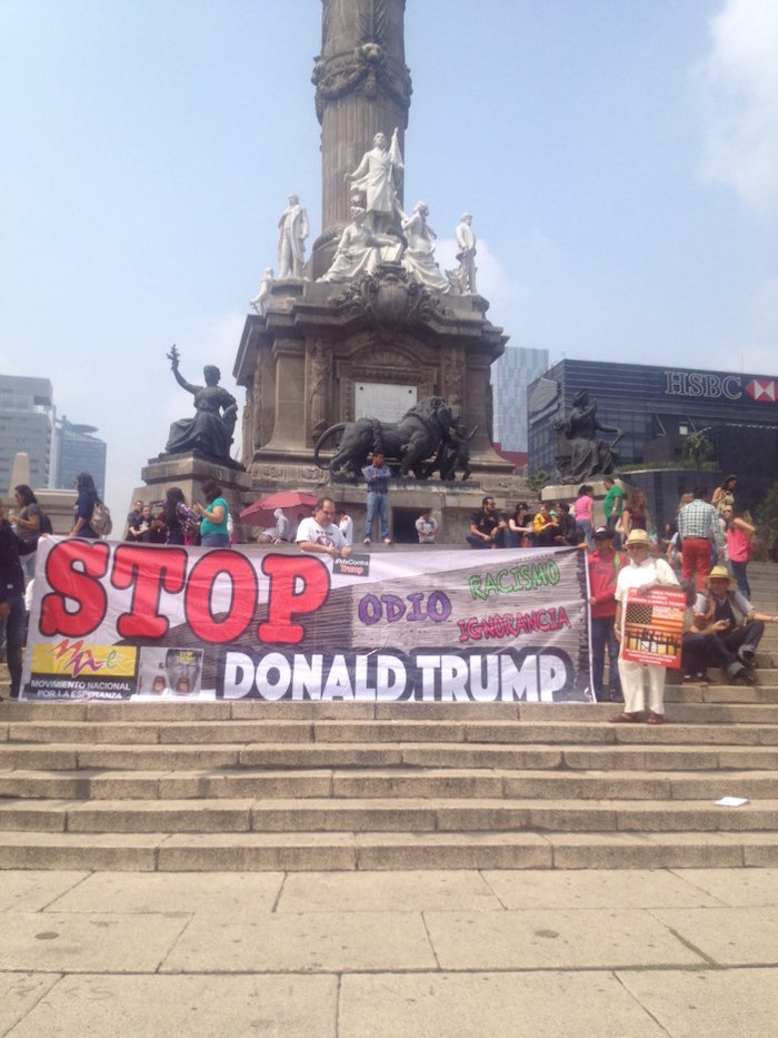 Ciudad de México, 25 de septiembre (SinEmbargo).– El temido muro fronterizo de tres mil kilómetros entre México y Estados Unidos ha sido colocado sobre la avenida Reforma frente al Ángel de la Independencia. Sin embargo, no ha dividido ni dañado la relación bilateral histórica entre ambos países: al ritmo del mariachi, mexicanos y estadounidenses se unen contra el candidato Donald Trump durante la campaña "Gringos a votar".