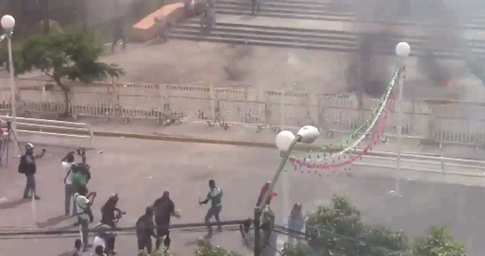 Los elementos de seguridad repelieron con gases lacrimógeno la agresión, que derivó en un enfrentamiento dejando un total de siete detenidos.