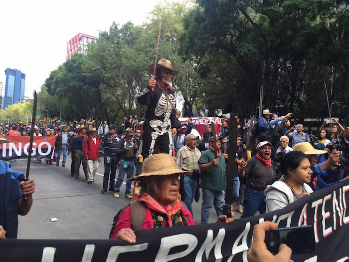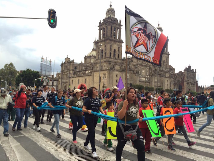 Casi al final del largo, largo contingente, los manifestantes no pararon de tocar tambores. No era una fiesta, sino un llamado fuerte por justicia. Los padres, una vez más, marcharon hasta adelante para saber dónde están sus hijos a quienes no han visto en más de 600 días y noches.
