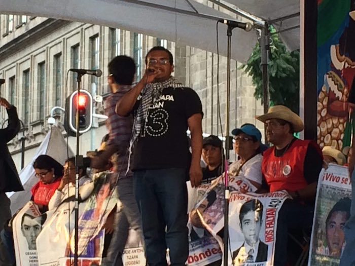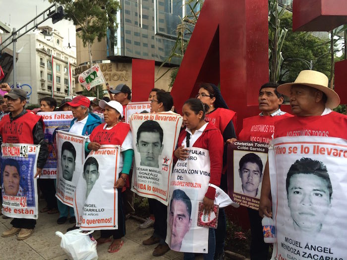 Vidulfo Rosales, abogado de los padres, aseguró que vienen a gritarle al "gobierno corrupto de Peña Nieto que, a pesar de sus llamados para que se olvidaran los 43, fracasó. El pueblo ya no lo escucha; está harto. Aquí reunido seguimos esperando la presentación con vida de nuestros compañeros y seguiremos caminando hasta encontrarlos".