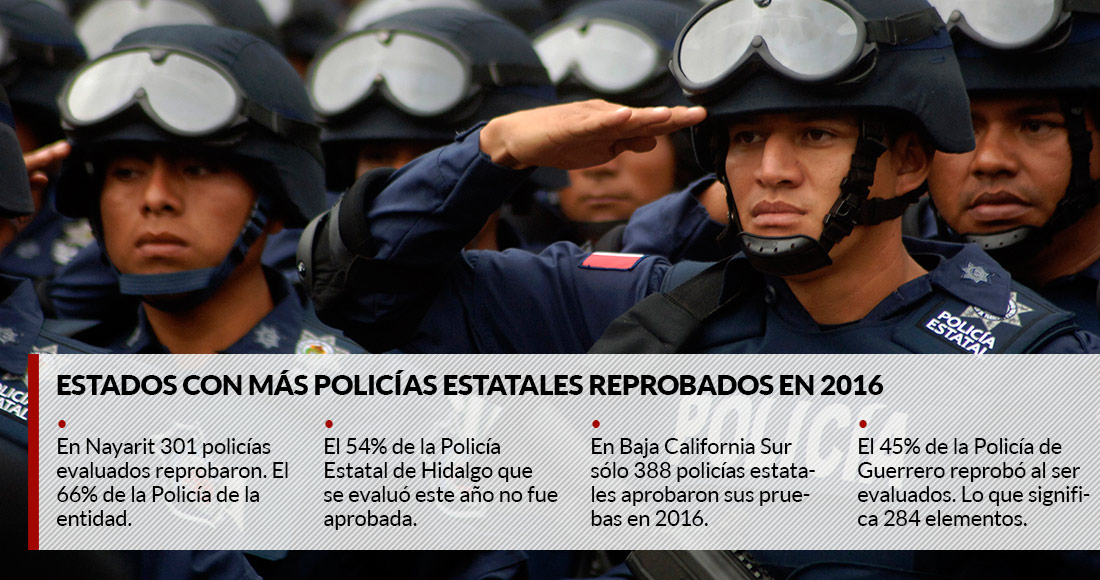 A siete años de que se expidiera la ley que obliga a realizar pruebas de control y confianza a los policías del país, algunos estados recién reprobaron a más de la mitad de evaluados que forman parte de las instituciones estatales de seguridad pública. Siete de los 10 estados con mayor número de elementos que no pasaron la prueba son gobernados por el Partido Revolucionario Institucional. Y partidos de oposición y analistas se preguntan por qué las autoridades aún se encuentra lejos de ser confiables.