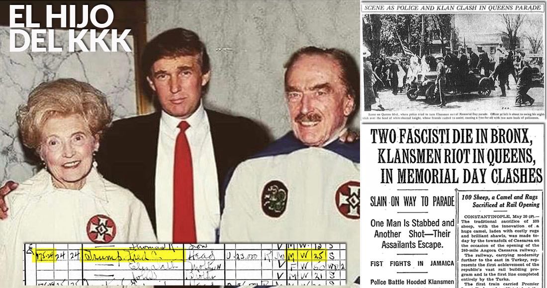 De acuerdo con una nota de The New York Times fechada el 1 de junio de 1927, el padre del hoy candidato republicano, Fred Trump, fue arrestado después de que un grupo de supremacistas blancos pertenecientes al Ku Klux Klan agredieron días antes a un grupo de policías en Queens.