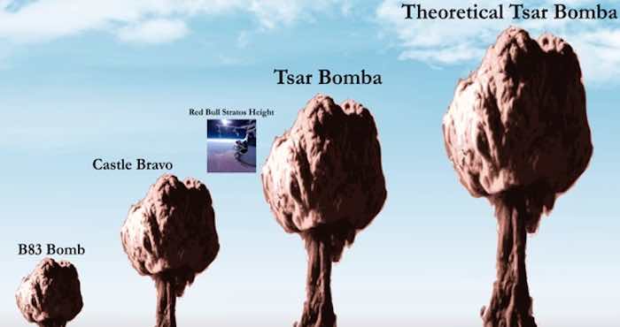 Sin embargo, explica, los rusos tenían planes para desarrollar una bomba todavía más poderosa: una que alcanzara una potencia de 100 megatones, que además de generar una nube radioactiva que superaría los 50 mil metros de altura, tendría una capacidad destructiva de 100 megatones, una explosión 6 mil 666 veces más poderosa que la de Hiroshima.