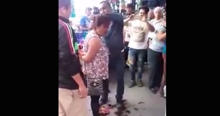 En el video es posible escuchar a una mujer que le pide al sujeto que deje a la señora, "ya déjala Gustavo", sin embargo, el hombre no paró hasta que le cortó varios mechones de cabello a la mujer y después le dio una cachetada. La presunta ladrona intentó responder la agresión, pero el comerciante se lo impidió, continuó insultándola, la tomó de un brazo y la retiró del lugar.