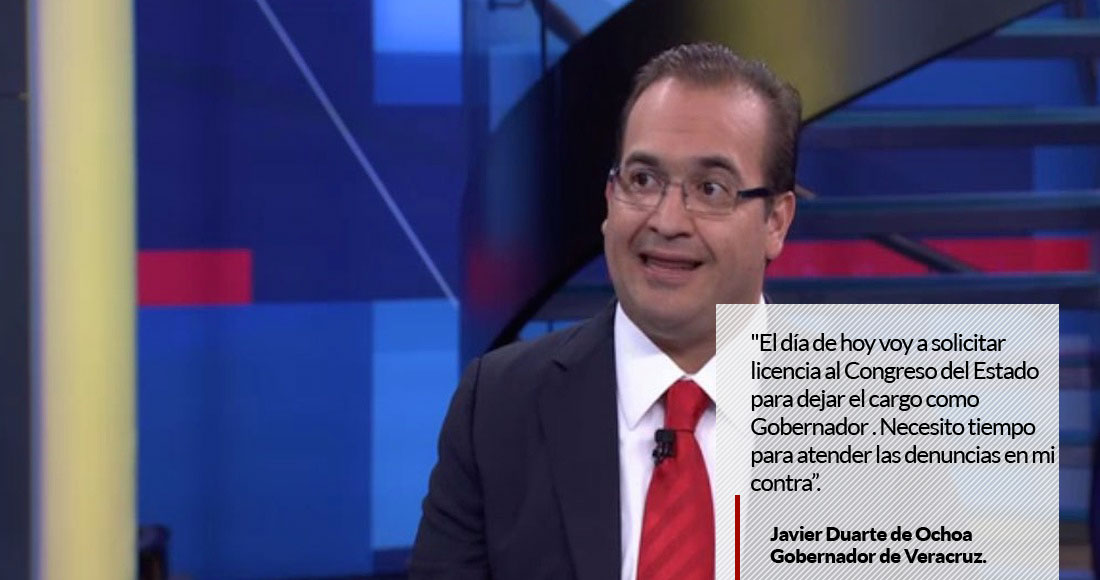 Y, ayer, Duarte de Ochoa anunció en un noticiero de Televisa que pediría licencia para que avanzaran las denuncias iniciadas en su contra.