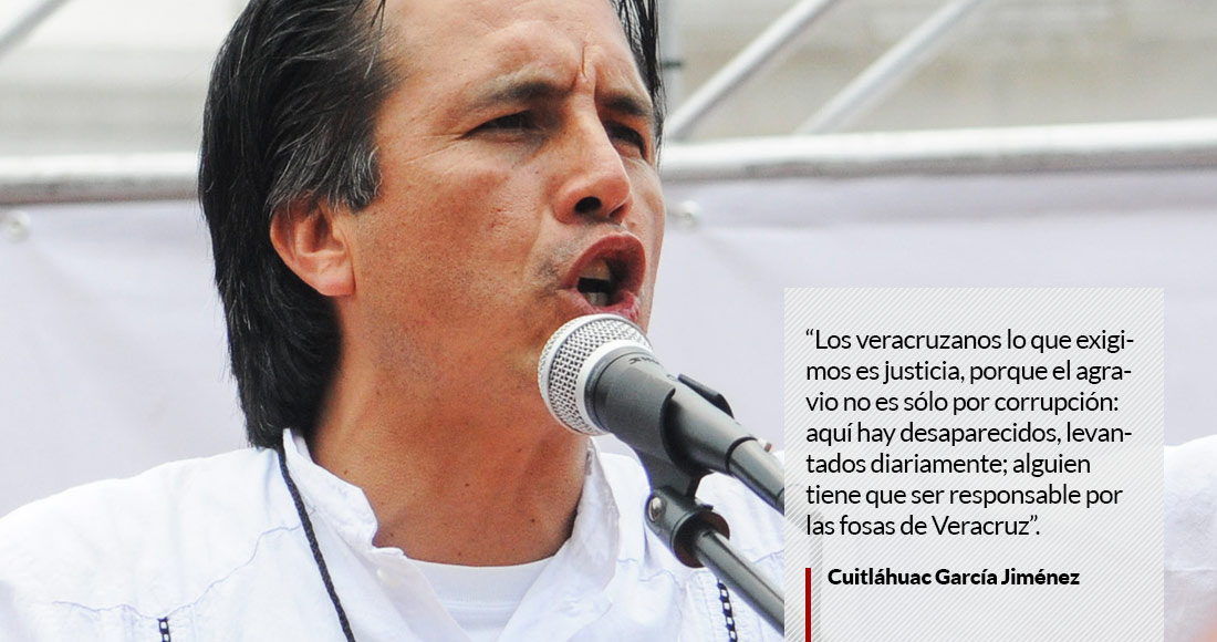 Ayer, Cuitláhuac García Jiménez, Diputado federal y ex candidato del partido Movimiento Regeneración Nacional (Morena) a la gubernatura del estado en las elecciones pasadas, dijo a SinEmbargo que Javier Duarte es perseguido por corrupción, pero no está acusado por las violaciones a los derechos humanos de su gestión; los muertos y los desaparecidos que engrosan la listas de los buscadores y buscadoras, que como Lucía escarban en las fosas que emanan de la tierra una tras otra.