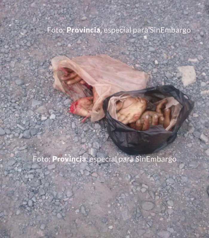 Junto al cadáver de un hombre joven había una cartulina color verde fluorescente que atribuye los hechos a un supuesto "Grupo Elite Antiratas", quienes supuestamente amputaron a las personas por "ser ladrones".