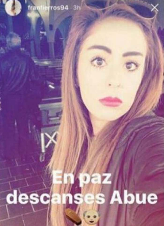 La primera publicación que hizo Palomino fue por medio de Snapchat. En ella aparece con un vestido negro, y detrás de ella, el féretro de su familiar. Junto con la imagen se lee lo siguiente: “En paz descanses abue”.
