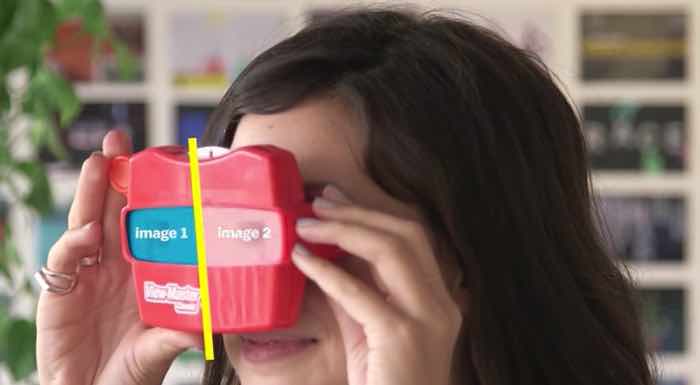 Por eso cuando combinamos dos imágenes similares pero no iguales y las empalmamos, obtenemos una ilusión de profundidad -como en el caso de los estereoscopios (inventados en 1840), o de las películas en 3D, y más recientemente, la realidad virtual-.