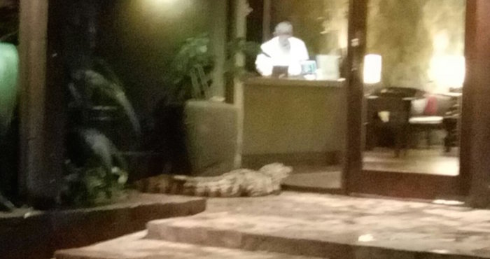Un caimán tomó por sorpresa a los trabajadores de un lujoso hotel en Iguazú. Resolvieron el "pequeño" percance llamando a las autoridades correspondientes quienes inmovilizaron al reptil y lo trasladaron a su hábitat.