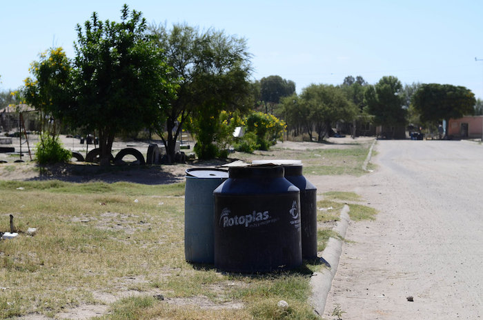 Es miércoles por la tarde en Patrocinio, un ejido ubicado a unos cuatro kilómetros de San Pedro, Coahuila, con sus calles de tierra floja y sus casas de adobe con techo de madera, sus cercas de ramas de mezquite, sus lilas en la puerta, porque son las plantas que más de dan en la Laguna, dado que necesitan menos agua y aquí es un lugar árido, y sus tinacos en plena calle, pa que cuando pase la pipa del agua potable, que manda la municipalidad cada ocho días, los llene, porque aquí en Patrocinio no hay agua potable.