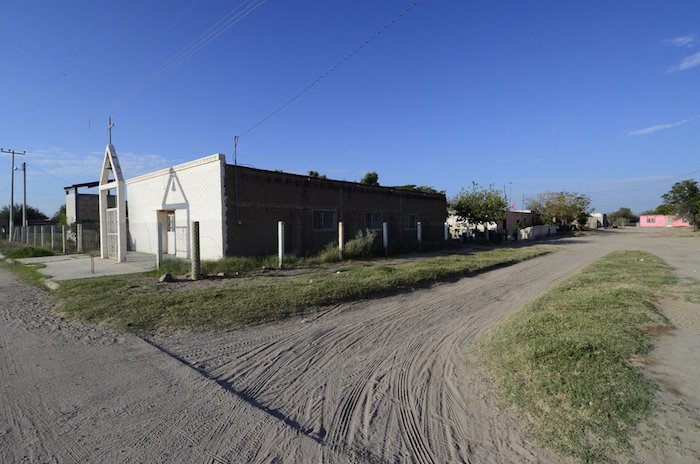 Es la capilla que hace 25 años levantó la comunidad con sus brazos, de puro pedir algodón regalado a los ejidatarios para venderlo y de vender tamales, taquitos y gorditas para sacar fondos.