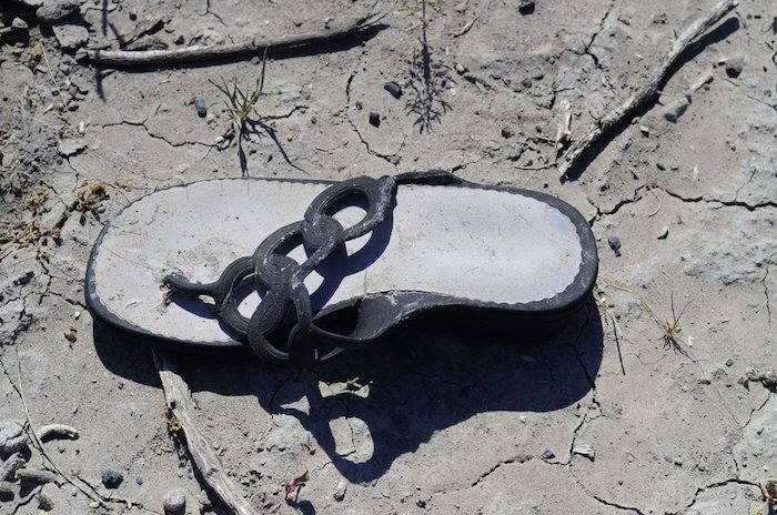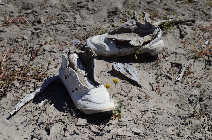 Durante nuestra excursión por la brecha hemos visto montones de zapatos y retazos de ropa regados por todas partes.