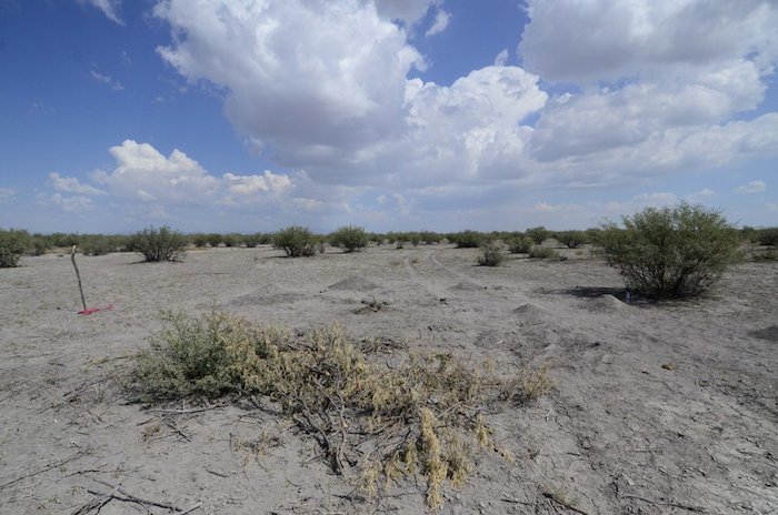 El sol rostiza como brasa y el aire, cargado de polvo, asfixia esta mañana en el eriazo del ejido Patrocinio.