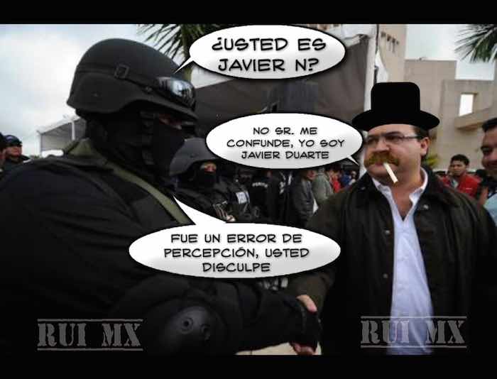 Ciudad de México, 1 de noviembre, (SinEmbargo).- Luego de que la Procuraduría General de la República (PGR) informara que tras catear el rancho San Francisco, en Chiapas, no encontró a Javier "N", es decir, al Gobernador con licencia de Veracruz, Javier Duarte de Ochoa, los usuarios de redes sociales no pudieron contener su indignación, y a modo de burla, lanzaron expresiones de repudio y uno que otro meme para condenar lo que para muchos es un poco creíble esfuerzo de las autoridades para dar con el funcionario.