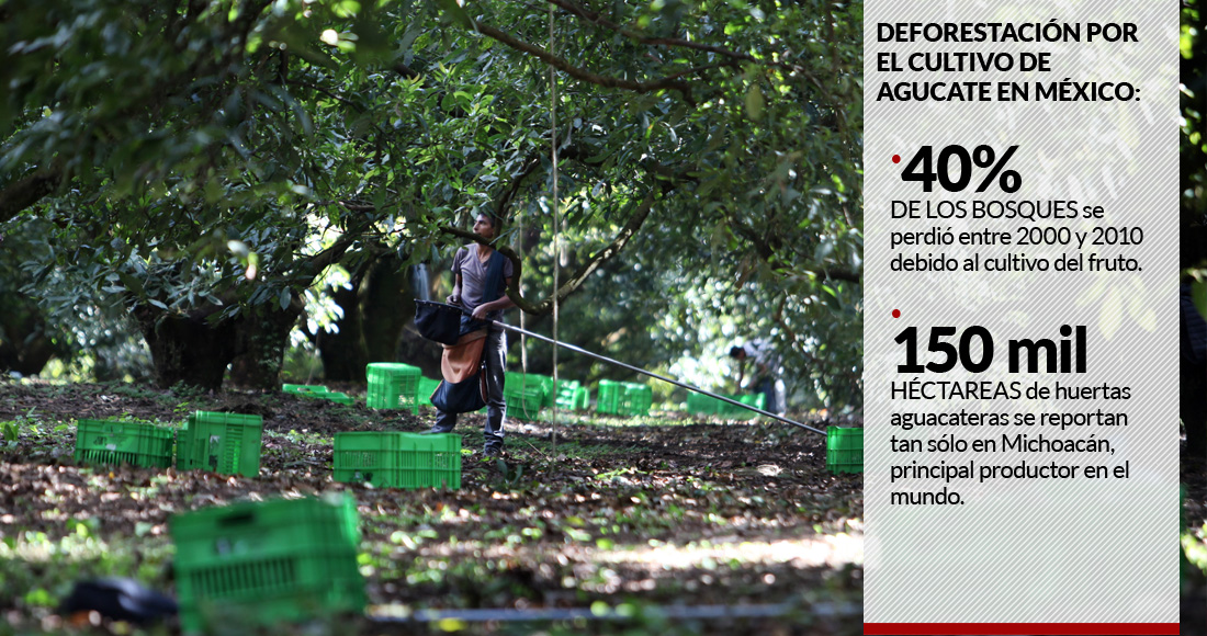 Entre 30 y 40 por ciento de la pérdida de bosques se debe al cultivo de aguacate, o entre 6 mil y 8 mil hectáreas anualmente, agregó.
