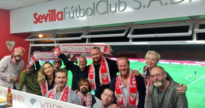 Ciudad de México, 7 de noviembre (SinEmbargo/JuanFutbol).- El partido entre el Sevilla FC y el FC Barcelona de este domingo contó con unos invitados de lujo en el palco: el elenco de Juego de Tronos. Actores y equipo de producción de la serie fueron invitados por el equipo andaluz.