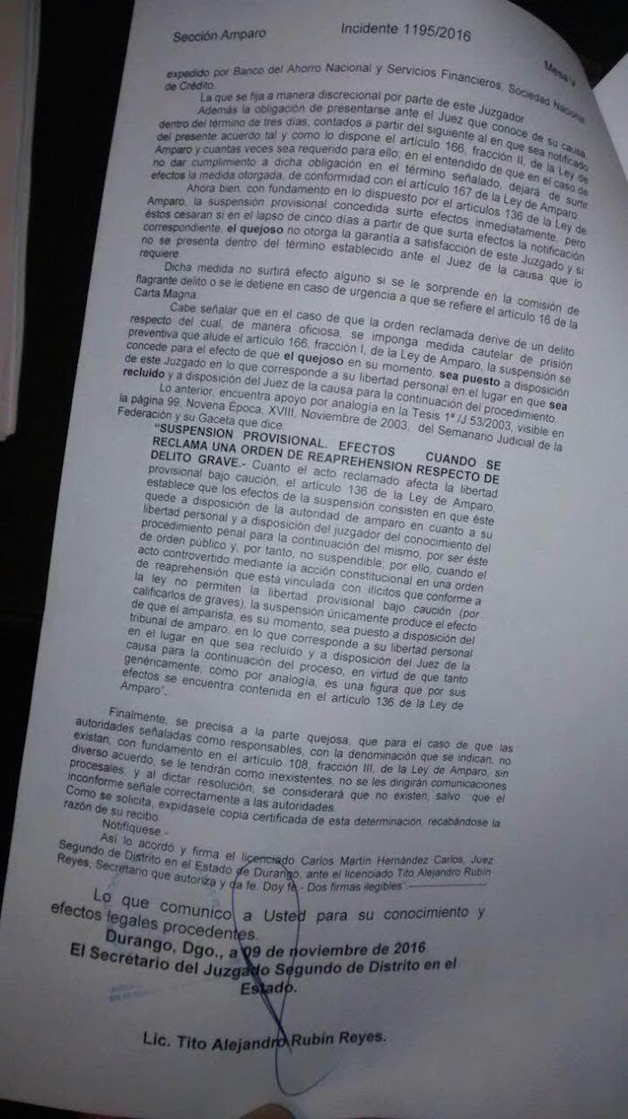 Pero a pesar de que no existe todavía una denuncia formal del nuevo Gobierno en contra del ex Gobernador Herrera Caldera y sus colaboradores, ellos ya se ampararon.