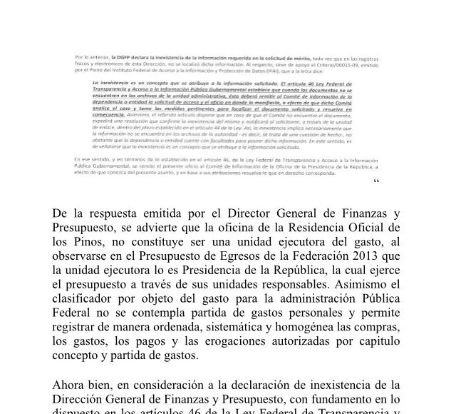 En México, los gastos del Presidente en la residencia oficial de Los Pinos no pueden conocerse. El Comité de Información de la Presidencia de la República los ha declarado “inexistentes” en todas las ocasiones que los ciudadanos los han solicitado mediante el Instituto Nacional de Acceso a la Información y Protección de Datos Personales (INAI); es decir, el Primer Mandatario no los reportó y ninguna instancia en la casa oficial los registró.