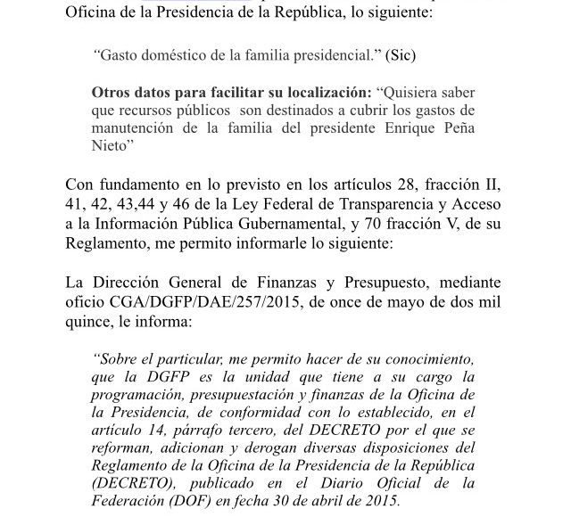La primera solicitud de información sobre el gasto doméstico de Enrique Peña Nieto fue en mayo de 2013; es decir, en los primeros meses como Presidente. El requerimiento del ciudadano fue el gasto destinado para el año en todos los detalles dentro de la casa a donde llegó a vivir investido con la figura presidencial.
