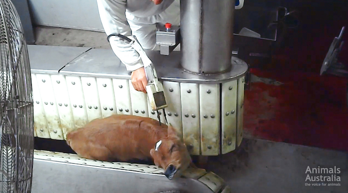 La grabación muestra becerros que no han llegado siquiera a la semana de nacidos y están a punto de ser quemados por electrocución y brutalmente apuñalados hasta morir, al ser considerados "productos de desecho" en la industria láctea.