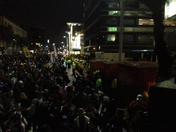 A pesar del fuerte operativo de seguridad la manifestación de miles de mexicanos se realiza en completa tranquilidad. Sin embargo, los cierres de avenidas importantes en esa zona de la Ciudad de México han provocado esta noche un enorme caos vial que ha sido también incrementado por la intensa lluvia que cayó durante la tarde de este jueves.