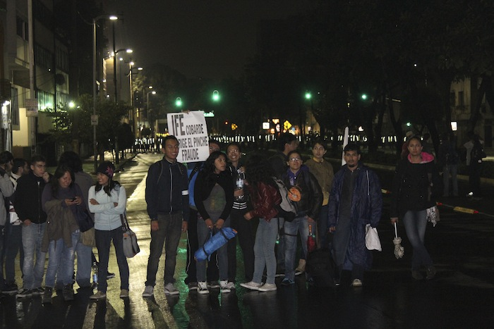 Los manifestantes instalaron un templete y bocinas en la esquina de Avenida Chapultepec y Enrico Martínez, donde hicieron uso de la palabra diferente líderes para criticar lo que consideran trato inequitativo de la información durante los comicios del 1 de julio.
