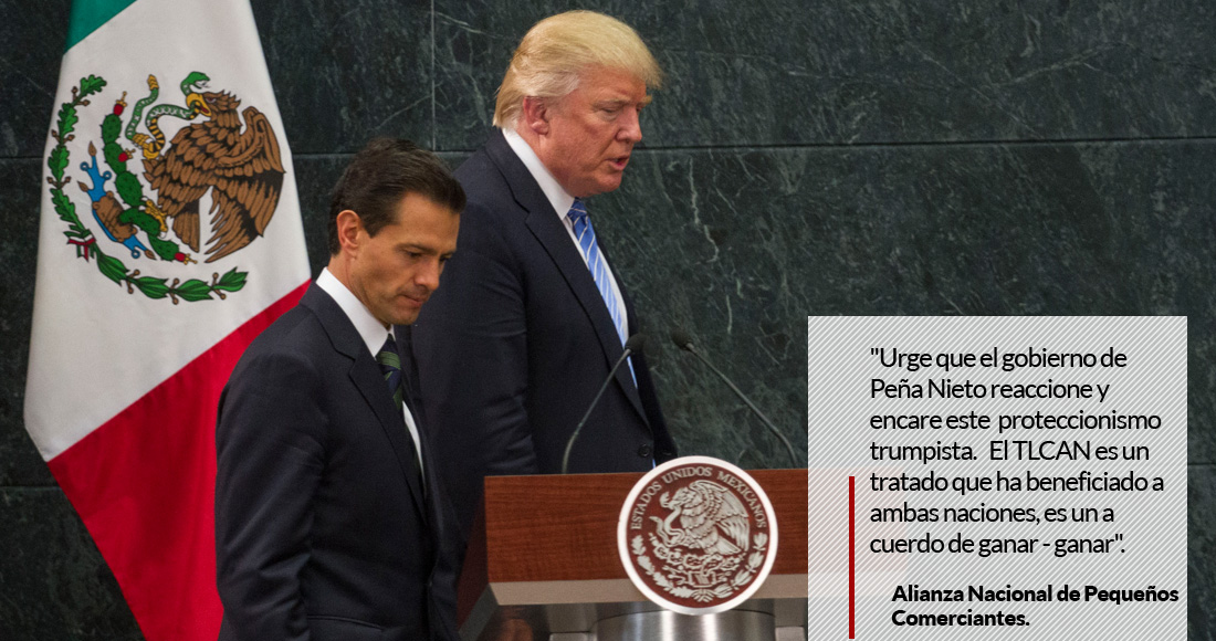 Y ayer, en un comunicado, la ANPEC, una asociación civil que agrupa a pequeños comerciante de todo el país, urgió al gobierno de Peña a reaccionar y encarar a lo que llamó “el proteccionismo trumpista”. Denunció también que Donald Trump representa intereses mezquinos que pretenden hacerse de riquezas que han costado décadas de trabajo.