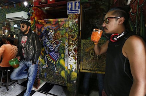 Ricardo Gallardo León es un residente de la Ciudad de México de veintitantos años de edad que bebe en la pulquería "Las Duelistas", en el centro.