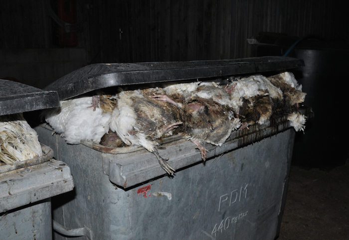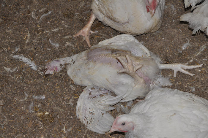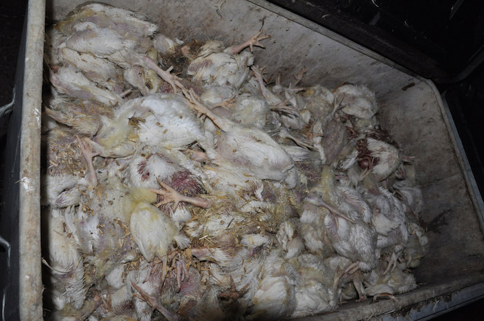 "Los pollos enfermos o heridos mueren agónicamente sin ninguna atención veterinaria", dijo.