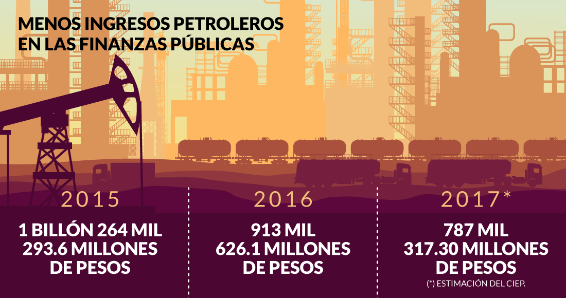 De acuerdo con un análisis del Centro de Investigación Económica y Presupuestaria (CIEP), la estimación prevista en la Ley de Ingresos de la Federación (LIF) de 2017 es que este tipo de capital, integrado por lo que generan Petróleos Mexicanos (Pemex) y el Fondo Mexicano del Petróleo, sumen 787 mil 313.3 millones de pesos; es decir, un 16.2 por ciento del total de los recursos que prevé recaudar la Federación.
