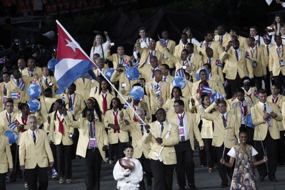 20727107. Londres.- La delegación cubana hace su aparición en el desfile de inauguración de los Juegos OlÃmpicos de Londres 2012. LONDRES12.